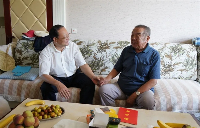 中國人民抗日戰(zhàn)爭暨世界反法西斯戰(zhàn)爭勝利75周年紀念日之際,山東省國資委領導分別慰問了省管企業(yè)的抗戰(zhàn)離休干部,感謝他們?yōu)橹袊嗣窨谷諔?zhàn)爭勝利做出的重要貢獻。