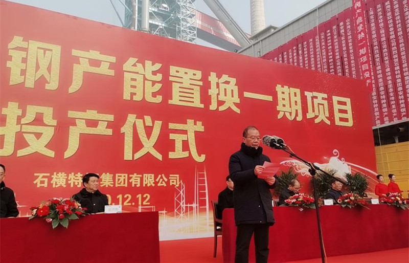12月12日,董事長(zhǎng)魏新民出席泰安特種用鋼產(chǎn)能置換一期項(xiàng)目投產(chǎn)儀式并致辭。